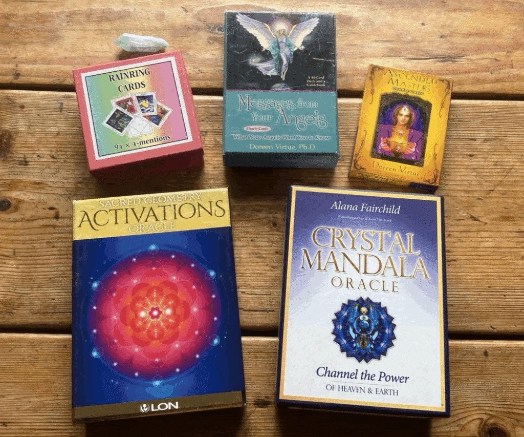 Oracle cards: Divination and activation card readings from Sacred Geometric, Crystal Mandala and Ascended Masters. One card reading included with Angelic Reiki treatments. Inquire for details regarding availability for card sessions. 40 mins one-to-one or remote: £30